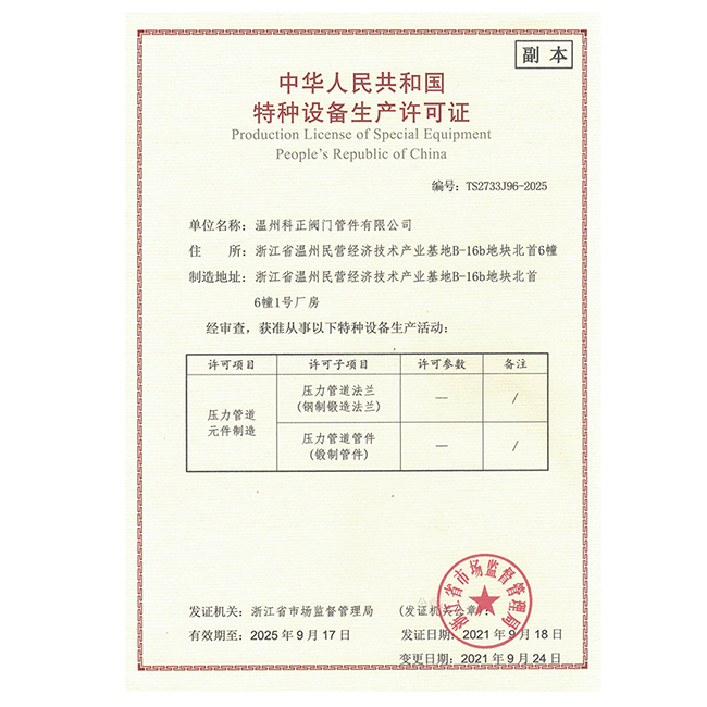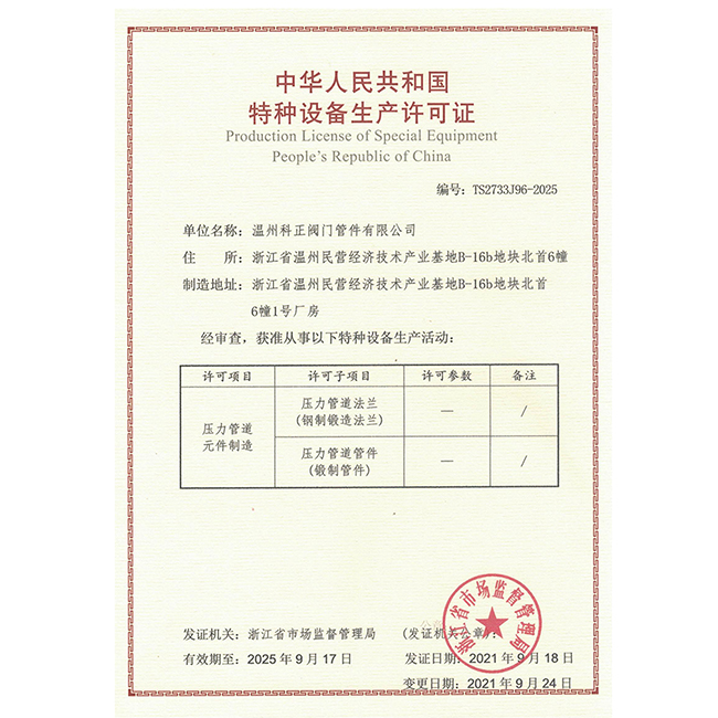 溫州科正閥門管件有限公司是一家生產(chǎn)承插管件、鍛鋼高壓管件、不銹鋼承插管件系列產(chǎn)品的企業(yè),公司以此為基礎(chǔ),積極開發(fā)新產(chǎn)品,提高了售后服務(wù),盡可能滿足客戶的要求,把質(zhì)量當(dāng)做生產(chǎn)的重心,保證安全生產(chǎn)出優(yōu)良產(chǎn)品的同時(shí),也保證了使用的可靠和安全性。